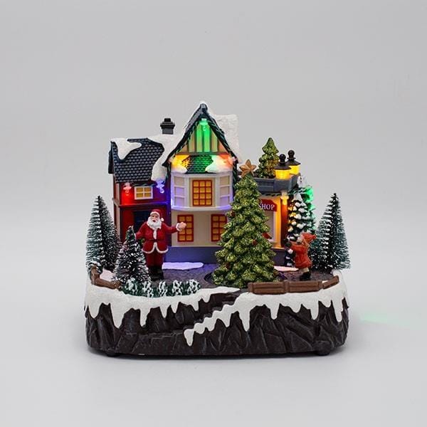 Πλατεία με Άγιο Βασίλη & Χριστουγεννιάτικο Δέντρο Με Φώς & Κίνηση Μπαταρίας 20x15x17.2cm