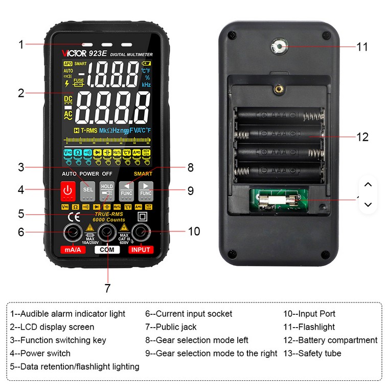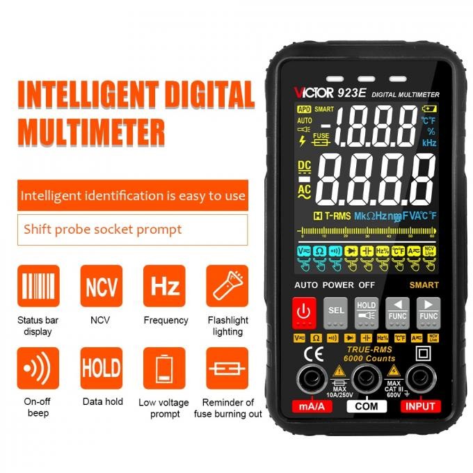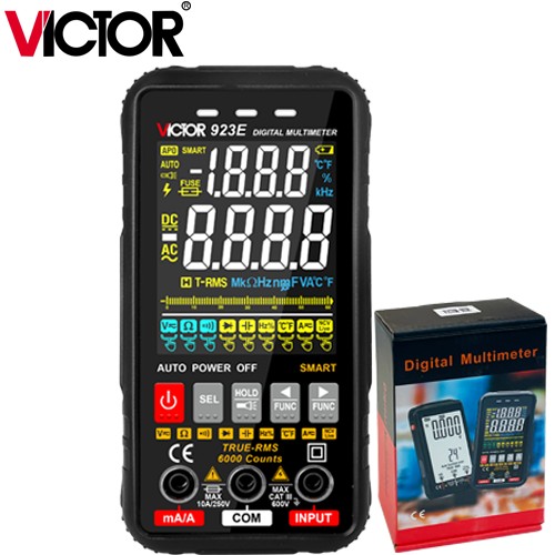 Πολύμετρο Υψηλής Ακρίβειας Με Έγχρωμη Οθόνη VICTOR VC-923EΨηφιακό πολύμετρο TRUE RMS.Μέτρηση τάσης, ρεύματος, αντίστασης, συχνότητας, buzzer.Ανιχνευτής τάσης AC χωρίς επαφή.Έγχρωμη και μεγάλη οθόνη.