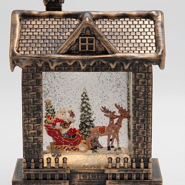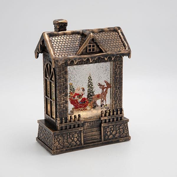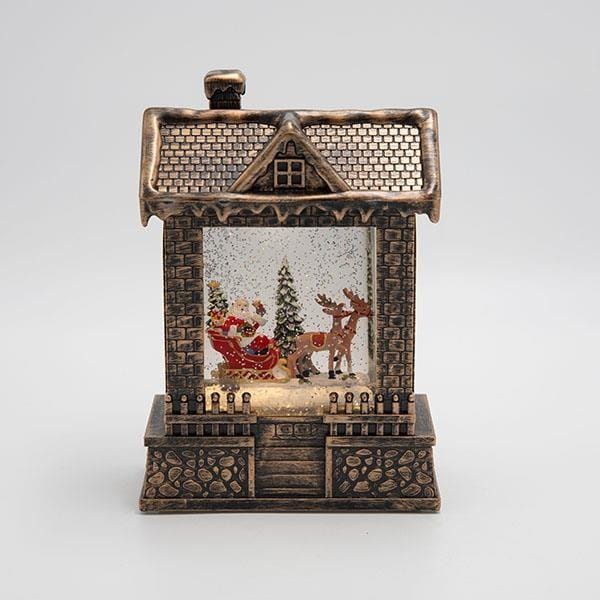 Σπιτάκι με Άγιο Βασίλη & Έλκυθρο με Νερό στο Εσωτερικό Φωτιζόμενο Μπαταρίας Timer 15x8x21.5cm