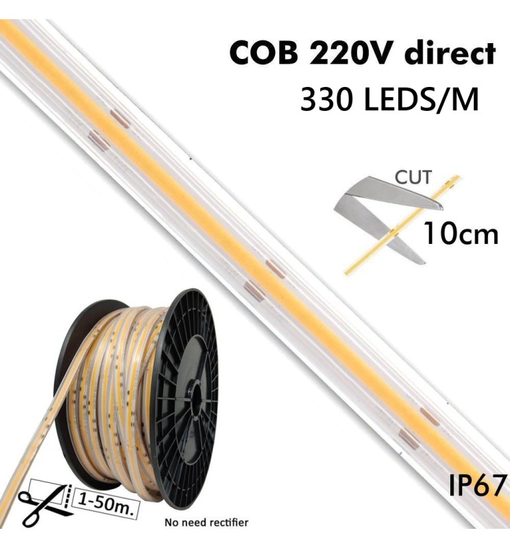 Ταινία Led 220V-240V AC Bridgelux cob 10W/m 4000K (50m) 330Led/m