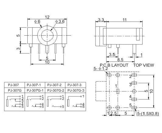 Τζάκ Σασσί/Πλακέτας 3.5mm Stereo 5 Επαφές AJ1700U
