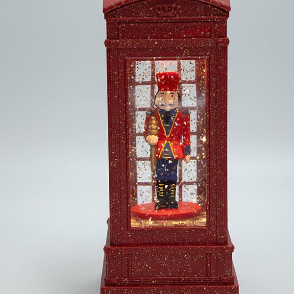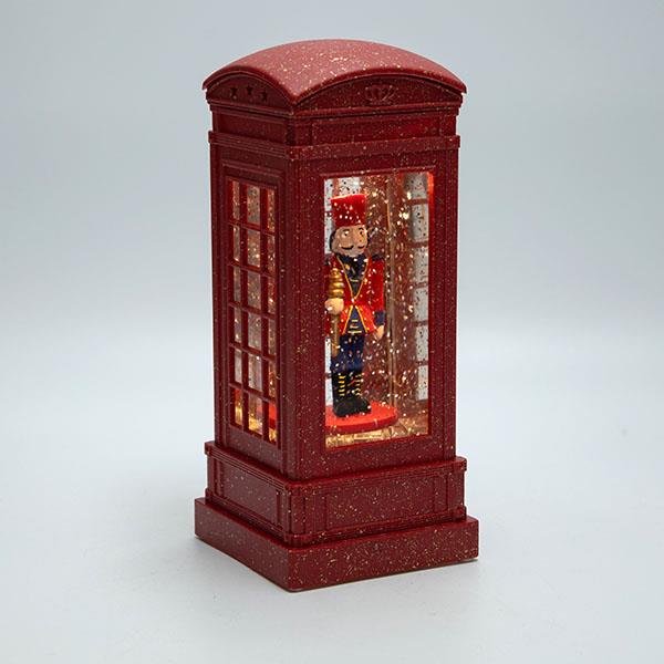 Τηλεφωνικός Θάλαμος Με Καρυοθραύστη Κόκκινος με Νερό Στο Εσωτερικό Φωτιζόμενος Μπαταρίας TIMER 8.8×8.8x21cm